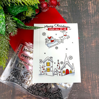 I did not want a whole lot of colors on this card . so I chose a few images to color red and colored the window with yellow to show the glowing light from inside. I added some shading on a few elements like the snow and the sleigh to add some depth.The sentiments are also from the same stamp set.